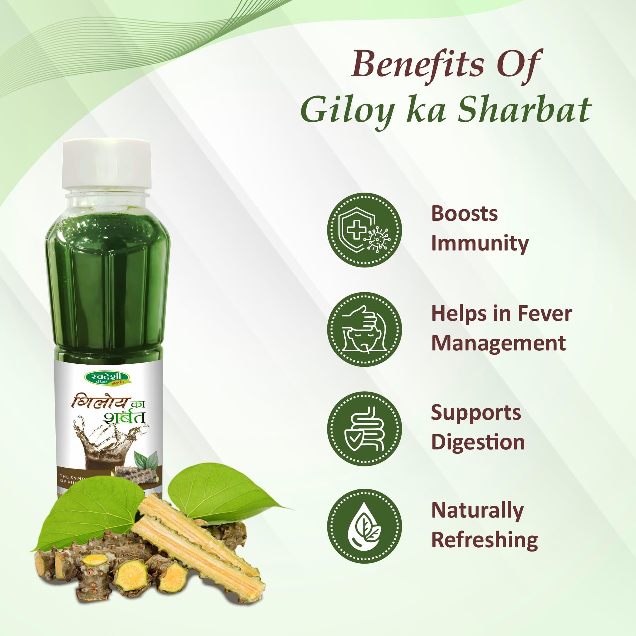 Packed with antioxidants, Swadeshi Giloy Sharbat promotes overall wellness and keeps you energetic. Add it to your routine for better health—mix with water and enjoy!