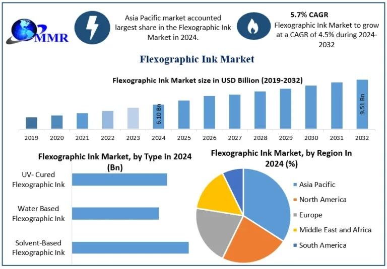 Anticipated Growth in Revenue: The Flexographic Ink Market was valued at US$ 6.10 Bn. in 2024 and is expected to reach US$ 9.51 Bn. by 2032 at a CAGR of 5.7 % during the forecast period.