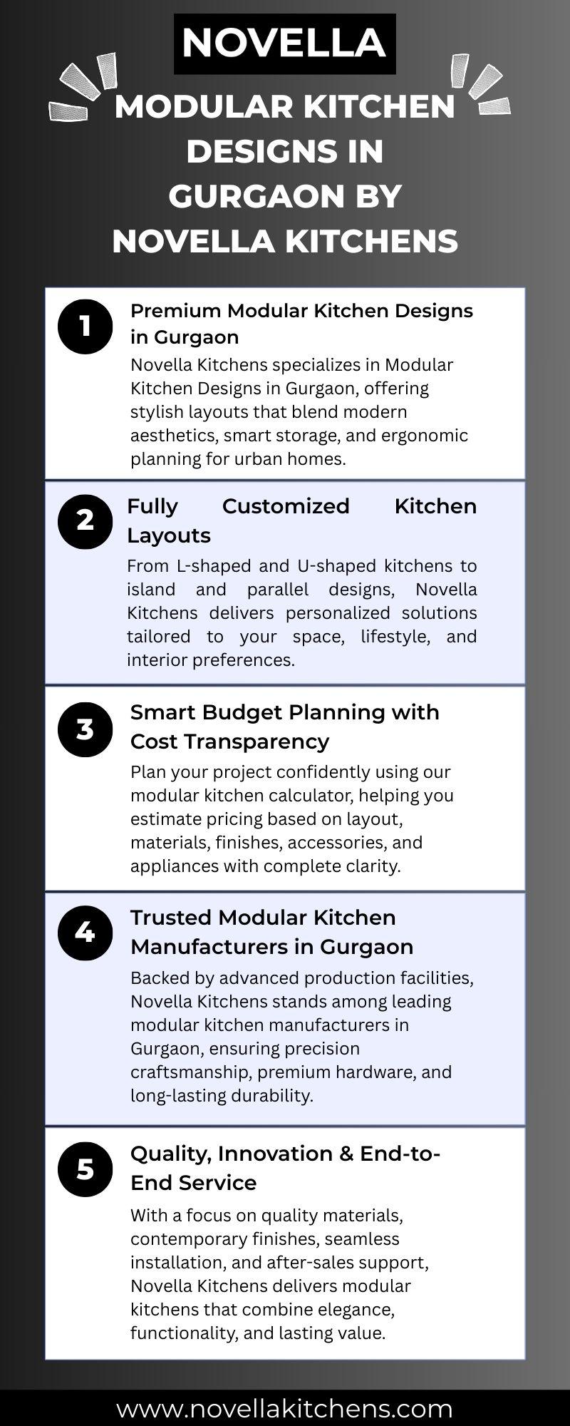 Explore premium Modular Kitchen Designs in Gurgaon by Novella Kitchens. Get fully customized layouts, smart storage solutions, and durable finishes crafted by expert modular kitchen manufacturers in Gurgaon. Use our modular kitchen calculator for transparent pricing and accurate budgeting. Transform your kitchen with modern designs, superior craftsmanship, and end-to-end installation support.