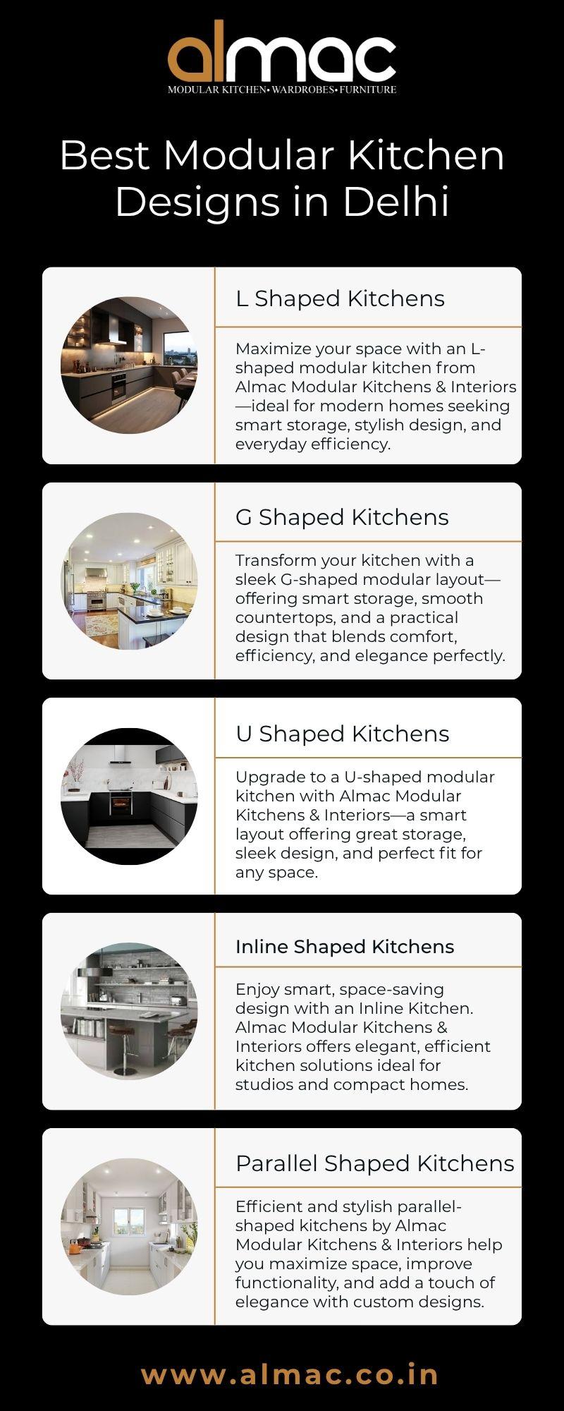Looking for the best modular kitchen designs in Delhi? You're in the right place! At Almac Modular Kitchens and Interiors, we blend smart layouts with stylish finishes to create kitchens that truly work for you. Whether it’s compact or spacious, we’ve got the perfect design to match your lifestyle.