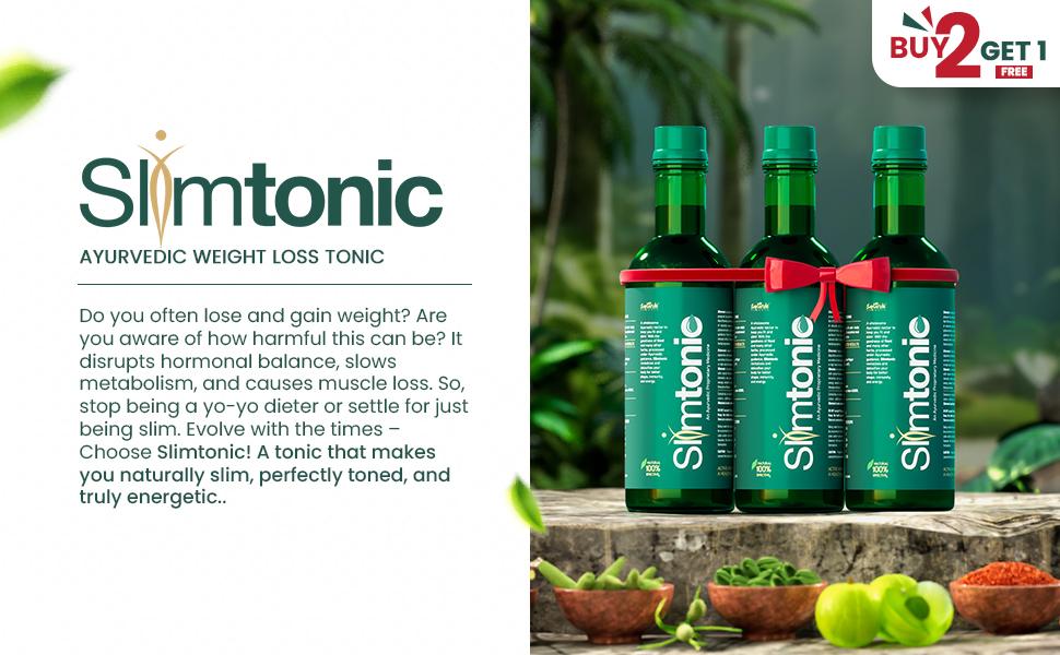 Slimtonic is an ayurvedic weight loss syrup formulated with a blend of ayurvedic ingredients that help in activating metabolism, boosting energy levels, and reducing hunger pangs. For those looking for a safe and natural way to lose weight without exercise or extreme dieting, they can stop their search at Slimtonic.
