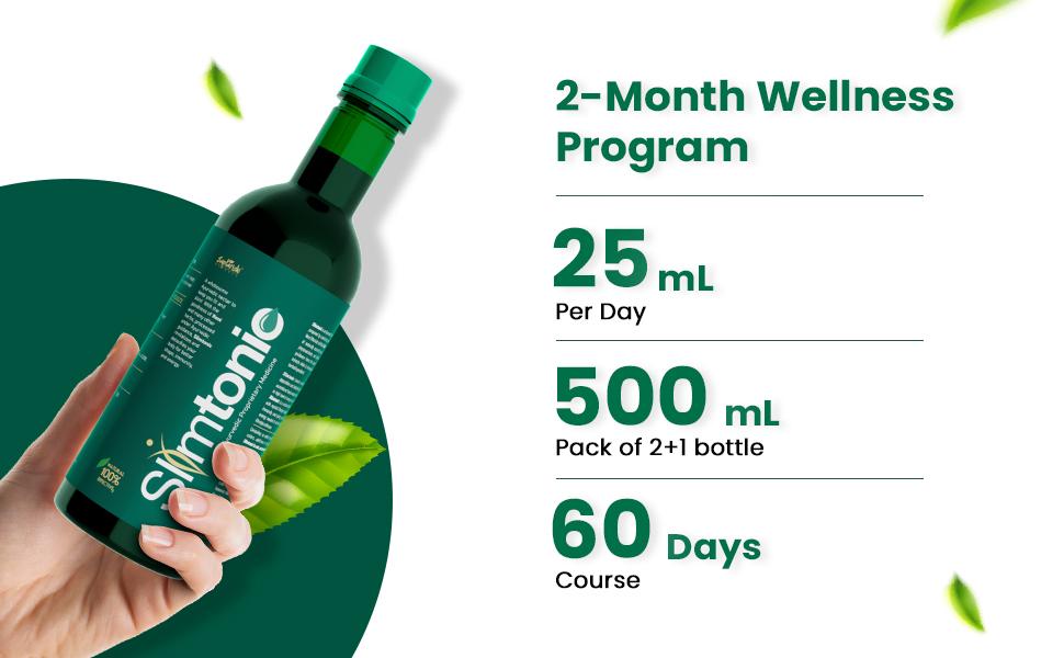 Take 10 to 15 ml of SlimTonic twice a day after meals. Drinking plenty of water and maintaining a balanced lifestyle enhances results.