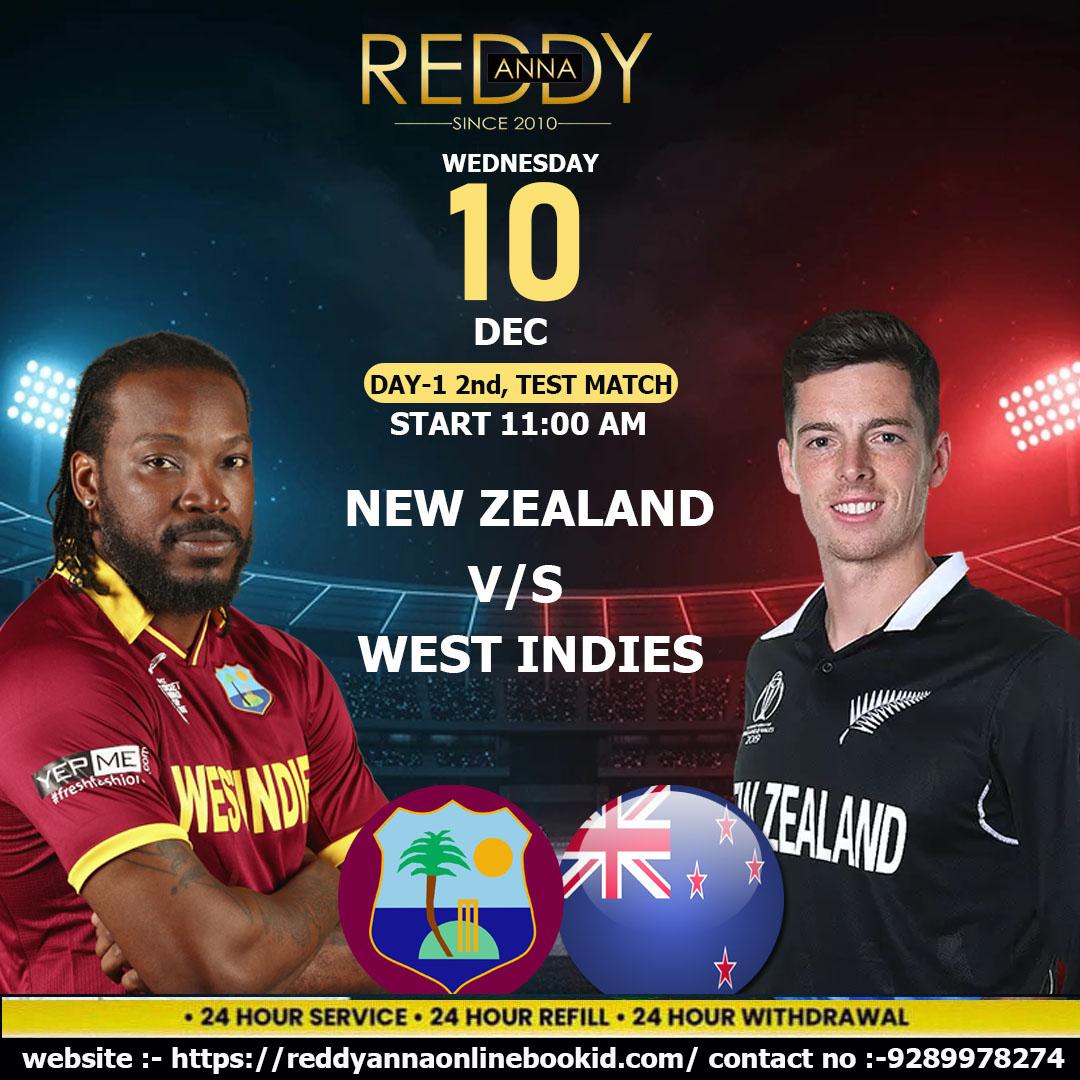 Catch the Live Action of NZ vs WI 2nd Test Day 1 on 10 Dec at 11:00 AM from Basin Reserve, Wellington with Reddy Anna Book ID. Catch up on live scores and key breakthroughs, session highlights, and accurate in-depth coverage of Tests. Stay tuned for the fastest, reliable, and most engaging live match coverage.