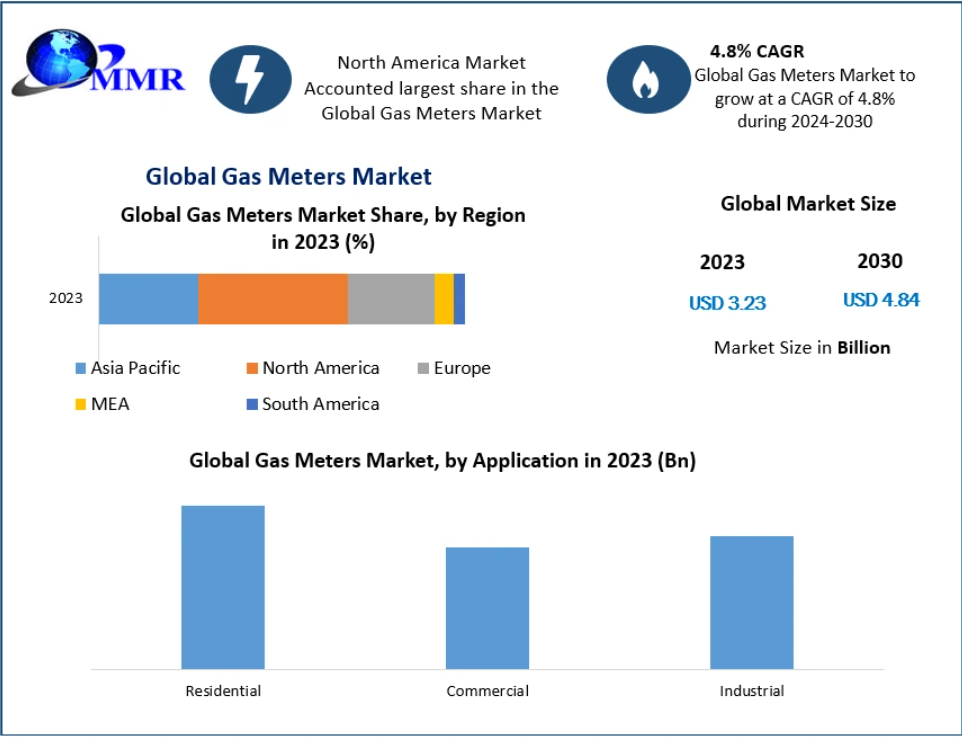 The global Gas Meters Market is entering a phase of steady transformation driven by expanding gas distribution networks, urbanization, and the digitalization of utility infrastructure. Valued at USD 3.23 billion in 2023, the market is projected to reach USD 4.84 billion by 2030, growing at a CAGR of 4.8% during the forecast period.